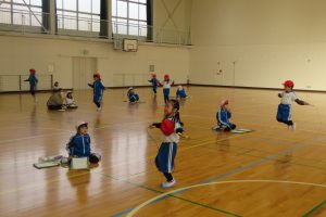 給食の時間、休み時間、掃除、体育の授業を見守っていましたが、日常生活の中で、自分でできること・自分たちでできることが増えたなと感じました。また、生活のルールを覚えており、ちゃんと守れるようになったとも感じました。慌ただしくて体育の縄跳びの様子しか写真にとれませんでした。縄跳びはまだまだ練習が必要な様子でしたが、きっとうまく跳べるようになるでしょう!