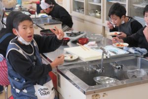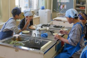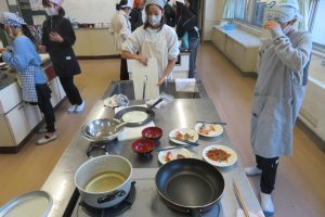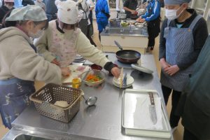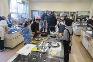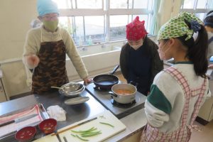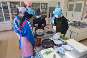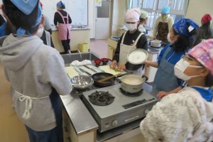 昨日と今日、6年生は「炒める」調理実習をしました。小学校で最後の調理実習とのことでした。