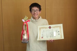 今日は、空手道ジュニア育成大会6年生の部「優勝」の報告に来てくれました。