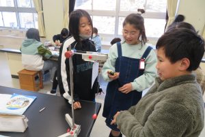 また5年生理科では、振り子が揺れる速さの法則をみんなで実験を通して見つけていました。