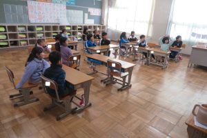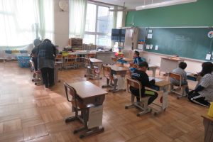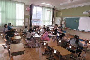 写真は今日の1~2時間目の各クラスの様子ですが、普段通りの授業の光景です。