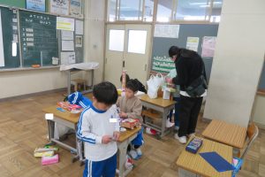 1年生の廊下を歩いていたら、「見て、見て!」と呼び止められました。