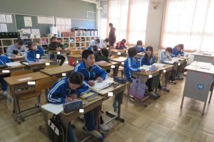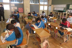 そんな落ち着かない状況の中、5年生の学習状況を見に行きました。空席が多く気になるのですが、今やれる国語(漢字)や算数の学習を黙々と頑張っていました。