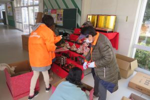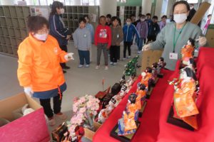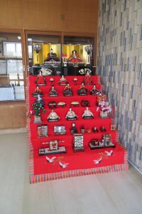 今年も、主任児童委員さん、民生委員の皆さんに、学校の正面玄関と児童玄関にひな人形を2セット飾っていただきました。