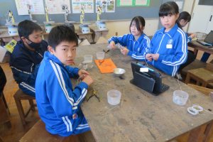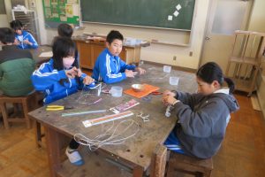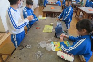 5年生が図工で、「針金アート」に挑戦していました。