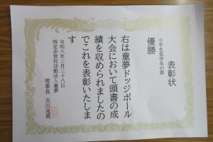 3年生の9名の子が、土曜日に瀬戸市で行われたドッジボール大会で優勝したと報告に来てくれました。