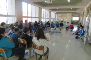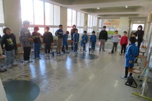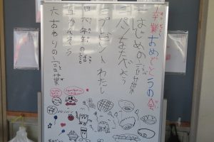 まずは、みんなでパン屋さんへ出かけていき、買い物体験をしました。学校に戻ってきて、パンをいただいた後、セレモニーがありました。
