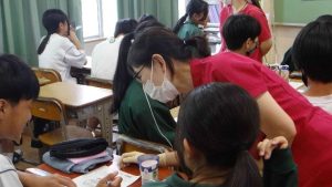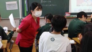 2年生生徒は事前に持ち物をしっかり準備し、真剣な態度で取り組んでいました。その姿を指導に入った歯科医さん、歯科衛生士さんが見て大変感心されていました。
