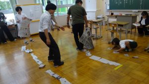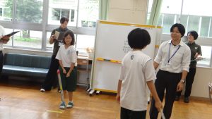 その後5時間目には、西可児中学校職員全員が一人の先生の授業参観をして、その後研究会が行われました。生徒が個人目標を立ててその目標に向かって生き生きと活動する姿をみて、参観した教員自身も自分の教科の授業でどのように生かしていくのか考えるよい機会となりました。
