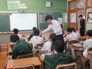 3時間目に、3人の先生の授業を参観しました。主事の先生が授業を参観し、ねらいにそってどんな意図で授業を仕組んだのか質問されながらご指導がありました。