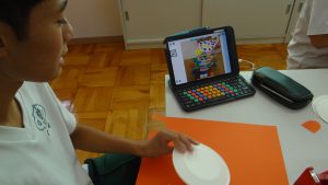 3年生の生徒たちが笑顔でおもちゃと作っている様子を見て、こちらも笑顔になってきました。