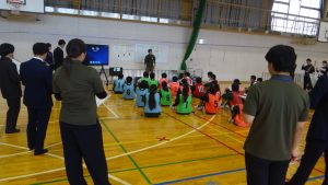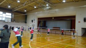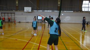 生徒達はどんな動きをしたらいいのか考えながら、意欲的に取り組んでいました。印象的だったのは、どの生徒も一生懸命集中して取り組んでいたところです。また、この授業のために、コートにラインを貼ったり、ビニールテープを張って目印を作ったり工夫して、生徒たちが身につけることができるように、様々な教具を準備していました。ある女生徒は、この一時間の授業を通して高い強いショットを打てるようになり、かなりラリーも続くようになりました。