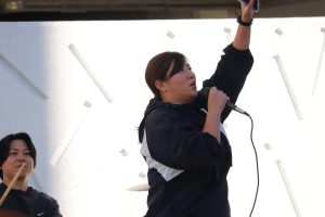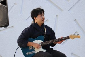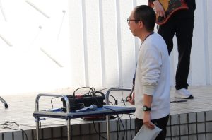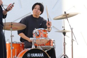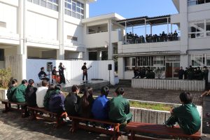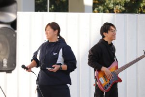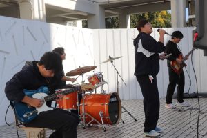 曲目はVaundyの「怪獣の花唄」。昼休みの中庭は、大盛り上がり!日曜日にバンテリンドームで行われたB‘zのライブにも負けていません(多分)。子どもたちの感想にも「かっこよかった!」「上手だった!」と、うれしい声が聞かれました。