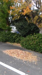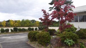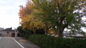 季節も移り変わり、校庭の木々もだんだんと色づいてきました。玄関横のところには、赤く染まった木々が並んでいます。学校の校門に入ったすぐ左のところに4本の大きな木があります。この4本は、黄色く染まっています。この時期には毎日たくさんの落ち葉があります。そこで落ち葉掃きをしてくれる生徒がいます。(その様子の写真は撮れませんでしたが、後日撮ります・・)秋の深まりを感じます。
