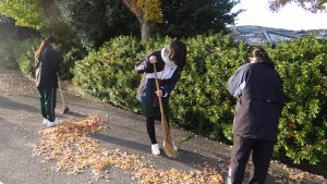 秋も深まり、寒くなってきました。特に朝は冷たく、空気が締まって体に力が入ります。そんな朝、学校の校門あたりには、落ち葉を集めてくれる生徒がいました。見ていると外は寒いですが、心がすがすがしい気持ちになりました。本校の教育「自立」「共生」「貢献」の中の「貢献」に当たる姿だと感じました。