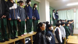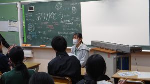 お昼の校内放送では「朝のあいさつで関わったり、響繋祭で共に過ごした経験は思い出の1ページとして残ります。今までありがとうございました。」とあいさつをしました。帰りの会では生徒たちが、響繋祭での合唱曲を各先生に歌ってプレゼントしてくれていました。