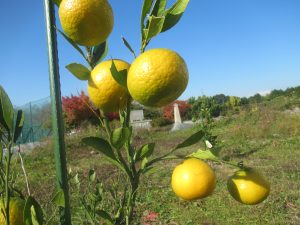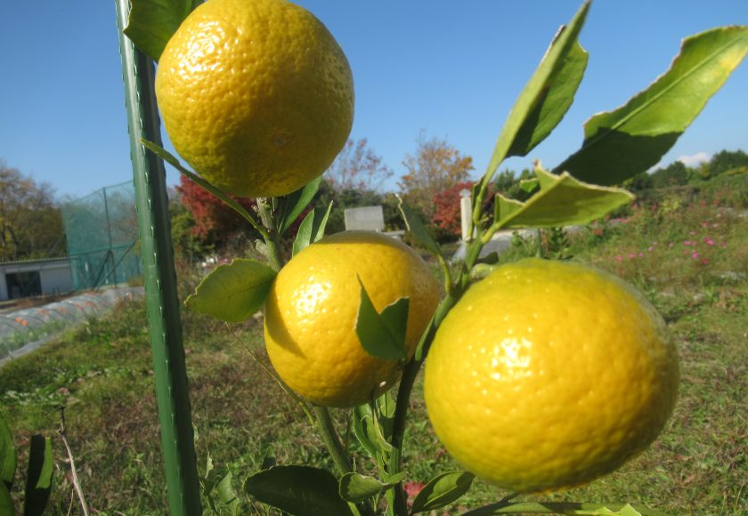 昨年度の3年生の子達と一緒に植えた「みかん」が実を付けました。