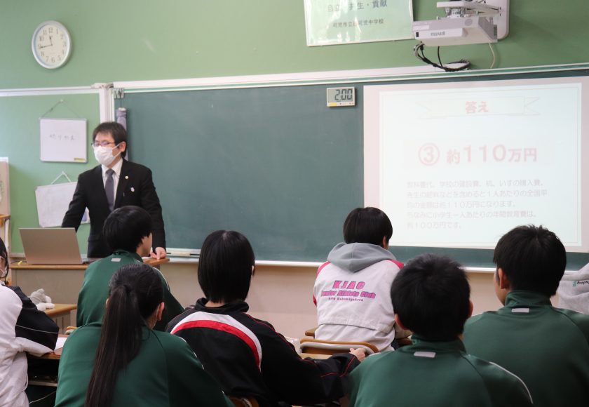 そもそもなぜ税が必要なのか、私たちの生活にどのように使われているのか。また、中学生の義務教育を支える必要な金額など、自分事としての「お金」についての学びの機会となりました。そして、私たちが支え支えられて社会を構成している仕組みを学ぶ機会となりました。