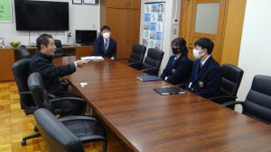 本日、加茂高校から2名の高校生がクリエイティブチャレンジDAYとして本校にやって来ました。これは加茂高校で今年から始まった取り組みです。興味のあることについて生徒自身がチャレンジする取り組みです。学校に興味のある2人は、今回本校を見学することになりました。