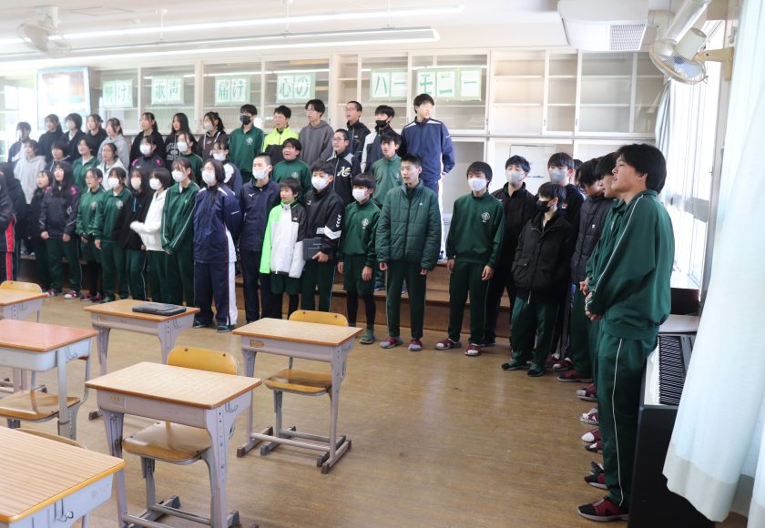 どれだけの生徒が来てくれるのか、心配していましたが、音楽室に行ってみると、約50人ほどの生徒が来てくれました。全学年の生徒が居り、これには驚きました。