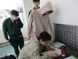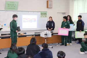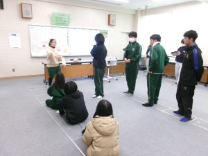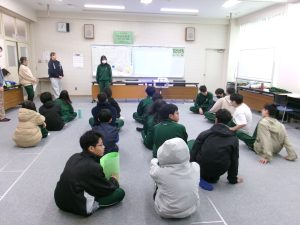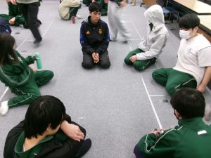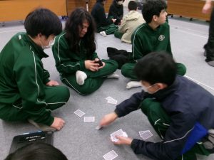 その後バトミントンをしました。3人グループを組んで対戦形式で行いました。最初堅かった雰囲気もだいぶほぐれてきました。次に会議室でカードゲームを行いました。楽しくゲームを行った後は、3年生への贈り物をおくり、3年生からの言葉を聞きました。