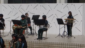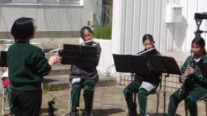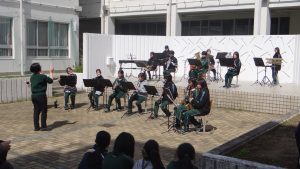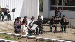 本校中庭で行われる「ガーデンコンサート」は、部員自らが自主的に活動を企画し練習をしてきました。また各コンサートで部員それぞれが、納得する演奏をするために練習を重ね、本番に挑んできました。さらに、見に来てくださる方々に少しでも楽しんでもらおうと工夫を重ねてきました。そういった活動をしながらその中で、「自主性」「表現力」を磨いてきました。それを見ている私たちをいつも楽しい気持ちにさせてくれました。