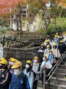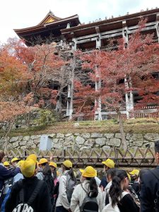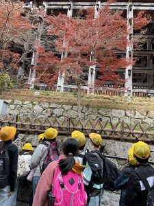 最後の見学場所、清水寺見学の様子を紹介します。音羽の滝の横を通り、清水の舞台を下から見上げて構造について学びました。見学後は、班別でお土産を買いに出掛けました。
