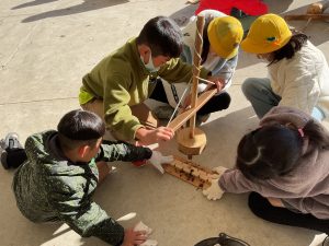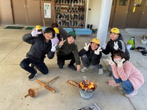 所員さんは簡単そうに火起こしをしていましたが、実際にやろうとすると難しい!
