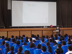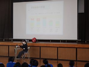 11月4日(水)に、本校の栄養教諭が、1年生を対象に「カルシウムの大切さ」について授業を行いました。