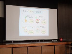 授業では、カルシウムを摂ることの重要性について話を聞いたり、楽しいクイズに参加したりしました。生徒たちは、食生活を見直すきっかけを得ることができました。