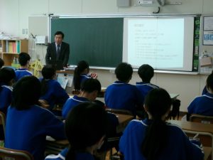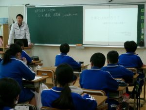 講師の先生方には、イメージが伝わりやすいように資料を使いながら、仕事の生きがいや熱い思いをお話ししていただきました。生徒も聞き入っていました。