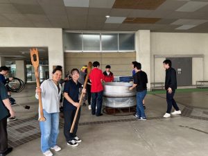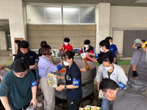 炊き出し体験のメニューである「カレー」を作り始めました。