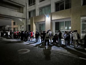 「大きな地震が起こったら、こんなふうにみんなが集まって、泊まることになるんだよ。」