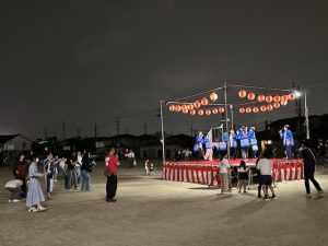 多文化共生防災キャンプ 盆踊りで盛り上がっています