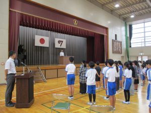 後期の始業式を行いました。後期は、運動会をはじめ、学年ごとに子ども達が主役となって取り組む行事がたくさんあります。東明小学校の笑顔のもと「すなお」の言葉通り