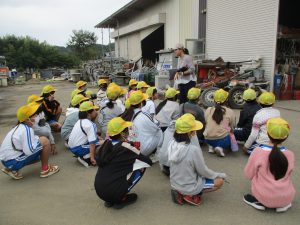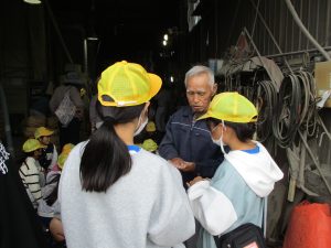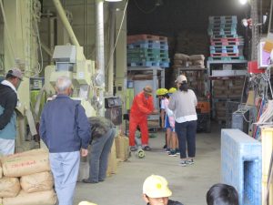稲刈りをした後、お米はどうなるのかを学ぶために、籾摺りの様子を見学しました。お米の粒からもみ殻がとられる様子を観察し、玄米になったお米を見せていただきました。普段食べる白いお米の粒とは違うことを、目で見て確かめていました。玄米の粒を少し分けていただくと、一人一人手に取ってどんな味がするのか試していました。ほんのりと甘いお米の味とにおいがしました。