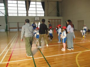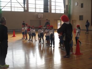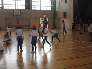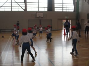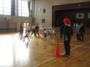 2年生は、ドッジボールを行いました。はじめは親子対親子で対戦しました。子どもたちは、おおはりきりです。試合が終わってみると7対7の同点で引き分けでした。2回目は、子ども対保護者の対戦でした。途中から保護者のコートが狭くなるなど、ルールの工夫もされました。今度は、子どもたちの圧勝でした。保護者の方と真剣にドッジボールができ、2年生の子どもたちは、ニコニコ笑顔がいっぱいでした。