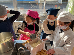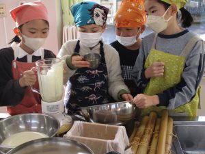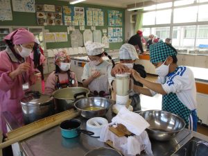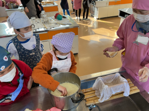 3年生の子どもたちが、毎朝水やりをして育てた大豆を使って、豆腐を作りました。