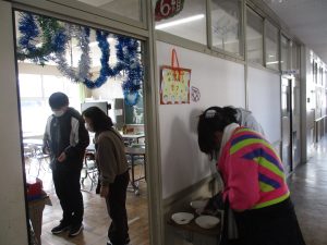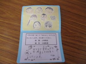 5組と6組の子どもたちが「なかよし」カフェを開いて、先生たちを招待してくれました。